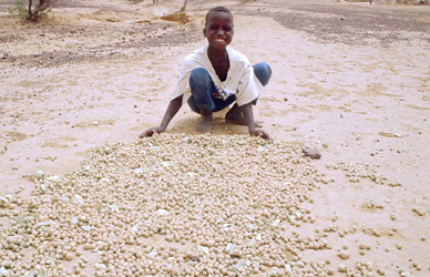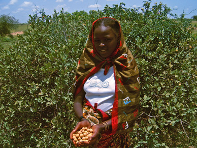 According to the media and large aid organizations, the Zinder region, which includes the Tanout department where Eden has been working since 1987, was mapped out as the region that had been the worst affected by the crisis.[xiv] Of the Zinder departments, Tanout is the driest and the least developed and should therefore have suffered the most, but the situation amongst our Eden farmers was very different from the picture portrayed in the media. In February 2005, people had just finished collecting fruits from two Eden species, which they were drying to keep for the coming months. I got a lot of Eden fruits from our field this year, reported Aïshatu Nasiru from Bubaram.I sold most of it at the market, so that I could buy millet and support my husband this year that the crops failed. This year we dont have any millet, said Hampsatu Mahamadu to our field workers when they visited her village Molori. Instead, we eat the fruits of the Eden trees in our field. The leaves of maerua crassifolia, which we pound and mix with peanut powder, are especially important. Im going out to the field to collect it right now.