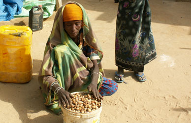 Hasia, the daughter of Hasan Idi from Marmari showed the field workers some of the Eden fruits that she had collected. Im very happy with my fruits. When I have collected enough, I bring them to the market of Shirwa where I sell them. With the money that I earn, I buy salt, spices and stock cubes that I bring home to my mother.
