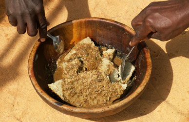 During this period, the women were busy collecting various edible annual grasses, following Edens recommendations. Though our research is focused on drought-tolerant fruit-bearing trees and bushes, Edens plant database covers all sorts of plants, totalling 27 000 different species of which 1300 grow in our area. When the rains failed in 1996, many of our farmers had just recently begun direct seeding and did therefore not have any mature perennials growing in their fields yet. Knowing there would be little food that year, Eden advised its farmers to collect different edible annuals available in and around their fields and to dry them for the months to come. This advice has since been repeated in all of our villages and has been adopted by many of our women, who dry the herbs and store them for the coming months. Dinner in Niger normally consists of millet dough and sauce, and the green leaves are a very important ingredient to that sauce. The herbs that the Eden farmers collect during the rainy season, together with the edible leaves from the Eden trees, provide the women of the Tanout area with a varied diet, which is a key element in avoiding malnutrition.