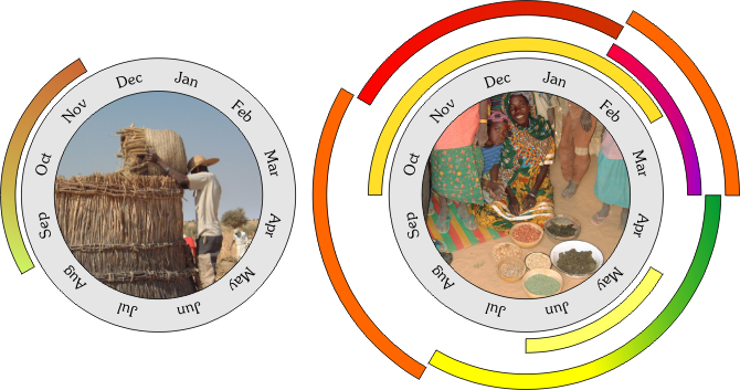 Coping mechanisms means peoples ability to fall back on alternative support systems when the main activity of their livelihood fails. They are a key element in attaining a sustainable life, but short-term aid represses these as it is easier to beg than to do something about ones situation. It is not true that the food does not exist, nor that the food available is famine food not worthy for human beings. In the Western world however, it is hard to appreciate what one does not know and the media has belittled the local food. Many poor people now dream of rice, maize and wheat; expensive crops that do not grow naturally in Niger and which are less nutritious than millet. A lot of money is wasted when wives insist that their husbands bring them quality food instead of local millet and the children suffer because the quantity is less and there are not enough nutrients in what they eat. In Tanout however, our children go out in the fields and pick fruits whenever they feel like it. Their food is varied and contains energy, vitamins, proteins and fat. There is money to be earned as the fruits are appreciated and easily sold. Because their parents chose to forgo destructive environmental habits several years ago and to start direct seeding, the younger generation now have edible trees and bushes available to them, which many others lack.