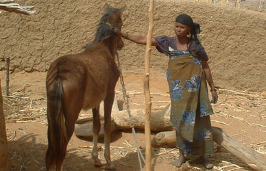 In March, the women were busy selling dried Eden fruits and collecting maerua crassifolia leaves. In the village of Zangou Sabon Carre, the Eden field workers met Nimatu Idi, whose family has worked with Eden for 10 years. Her husband had gone on exodus and left her in charge of the whole household, including her children, some chickens and a horse. In order to support my household, she said, I sell Eden produce.