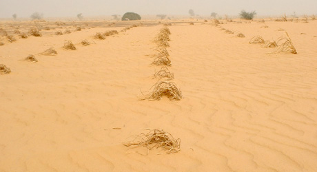 De unga hirsplantorna förstörs lätt av de starka sandstormarna när de inte längre är skyddade av träd och måste sås om vilket resulterar i otillräckliga skördar.